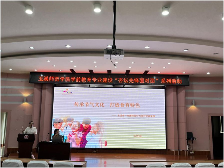 9月23日教师教育学院在科学讲堂开展了以“传承节气文化,打造食育特色”为主题的学前教育专业建设讲座,此次讲座特邀了正高级教师、玉溪市第一幼儿园教育集团总园长邓成丽老师作为主讲嘉宾,教师教育学院院长王晶晶、学前教育系主任左兴玲、学前教育专业教师杨燕霞参加了本次讲座,与学前教育专业的学子一同聆听了这场别开生面的讲座。