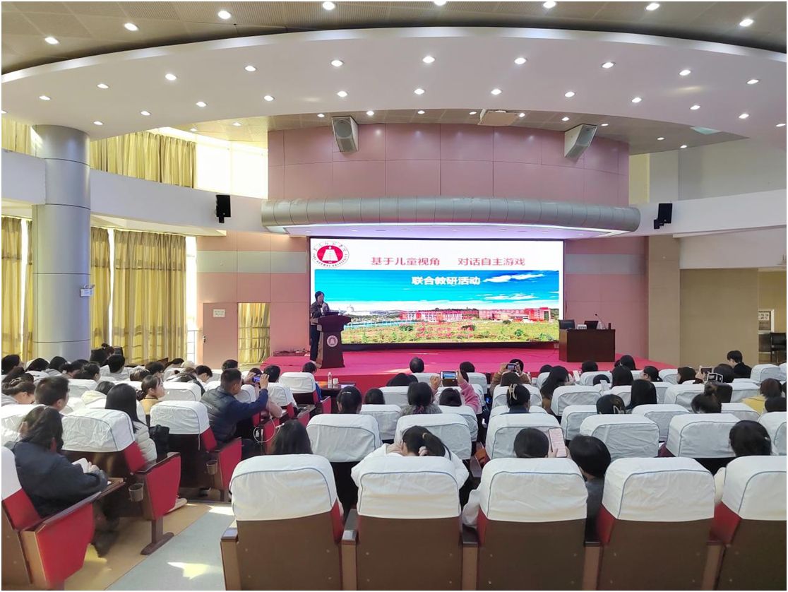 为深入贯彻《3~6岁儿童学习与发展指南》的精神,进一步提升教师专业素养及学前教育专业学生对游戏教育的深刻理解,增强学生在幼儿游戏中的指导、观察、分析与支持能力。2024年12月3日下午,教师教育学院邀请四川师范大学二级教授、博士生导师、学前教育学博士鄢超云教授,于图书馆多元学术厅开展“在游戏培养儿童的学习品质”联合教研活动。马丽娜博士担任本次活动的主持人,学前教育专业全体师生、玉溪市红塔区一线幼儿教师共计400余人参与了本次教研活动。
