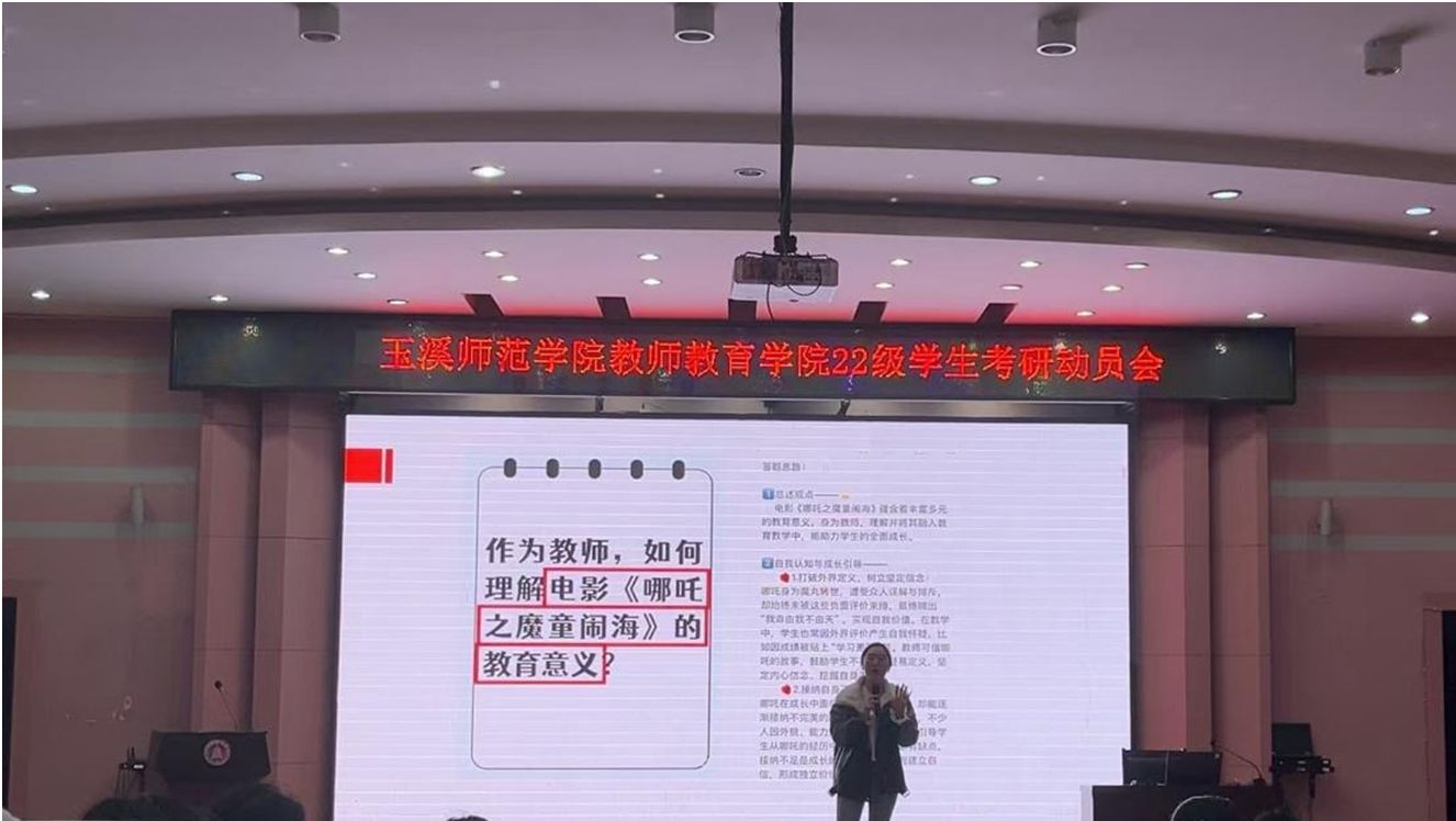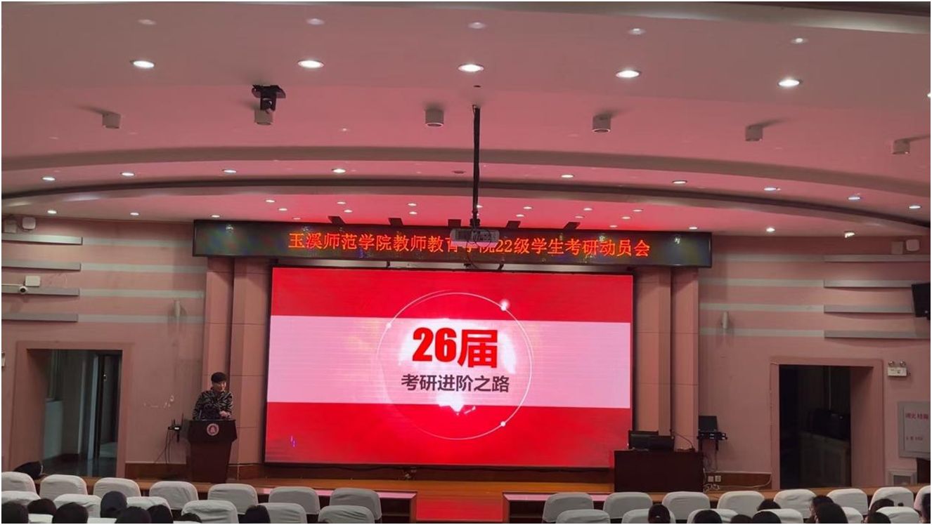 2025年2月25日,玉溪师范学院教师教育学院在科学讲堂举办了2022级考研动员大会,旨在点燃学生考研的热情,并为其指明备考的清晰方向。本次考研动员会特别邀请了云南海天教育的考研讲师为大家进行考情分析与考研复习规划。教师教育学院院长王晶晶、教师代表以及全体2022级有志于考研的学生参与了本次动员大会。