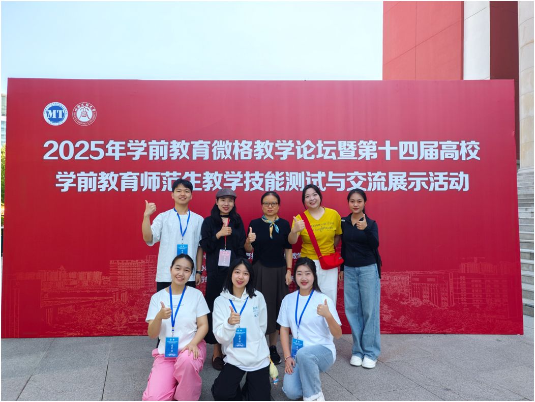 教师教育学院经过院级初选,由曹玉萍、张成军两位老师带队参赛,在这场激烈的角逐中我校学子脱颖而出,李晓雨同学荣获一等奖,段红丹、张怡两位同学斩获二等奖,盛米兰、孙小云、刘凤书三位同学斩获三等奖,展现出卓越的专业素养和扎实的教学功底。此外,我校曹玉萍副教授受邀承担2025年学前教育微格教学论坛暨第十四届高校学前教育师范生教学技能测试与交流展示活动评委及论坛点评嘉宾等工作,其中曹老师对参赛选手展示片段的点评具体、有针对性;对幼儿园综合活动、领域活动操作性概念的阐述获得现场专家的肯定,充分展示了我校教师在国内学前教育领域竞赛中的专业能力和风采。