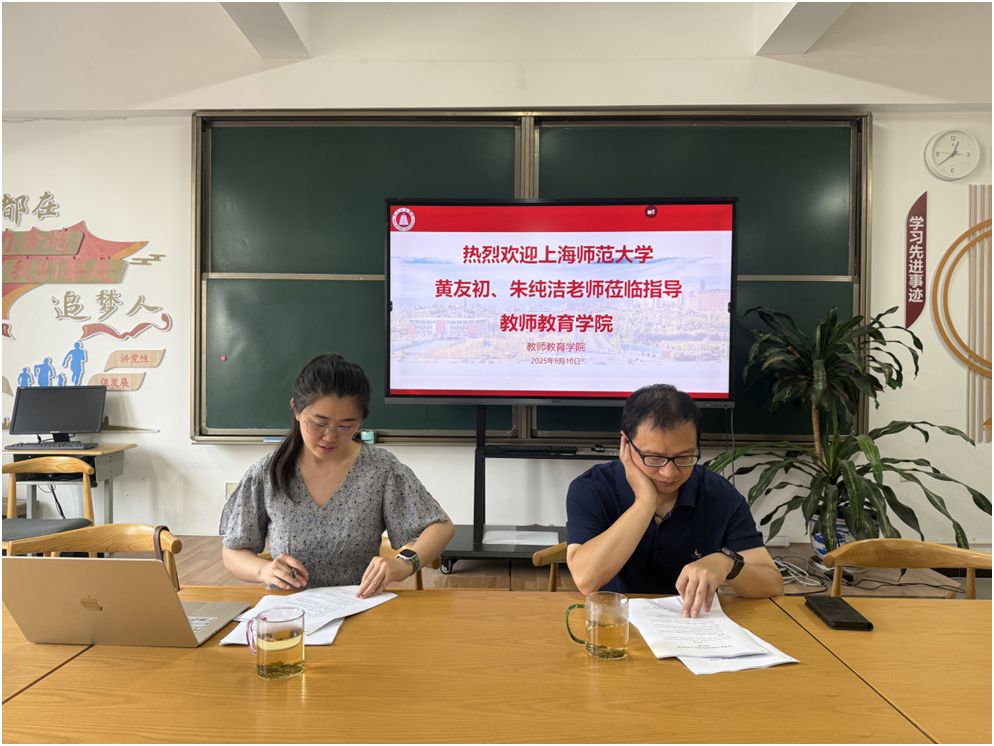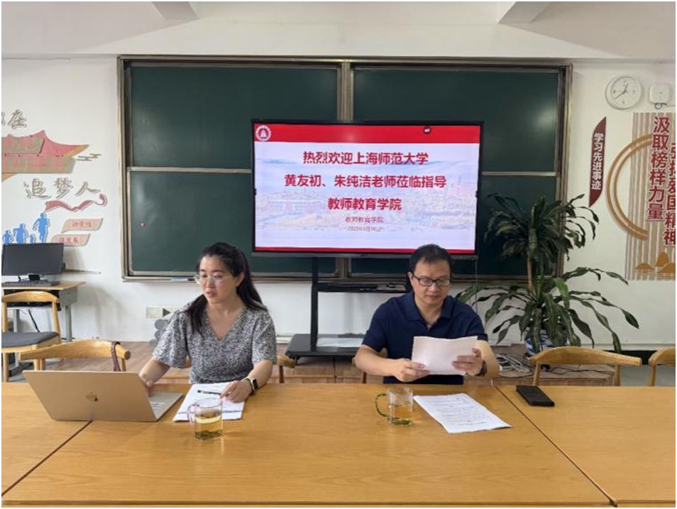 2025年9月10日至11日,上海师范大学黄友初教授、朱纯洁副教授莅临玉溪师范学院教师教育学院,就小学教育一流专业建设、课程建设、科研课题申报、教学改进等主题进行了深入的交流。教师教育学院院长殷素梅、党委书记莫晓辉、党委副书记宋树兵、副院长单新涛、副院长郑华,以及小学教育专业教师全程参与活动。