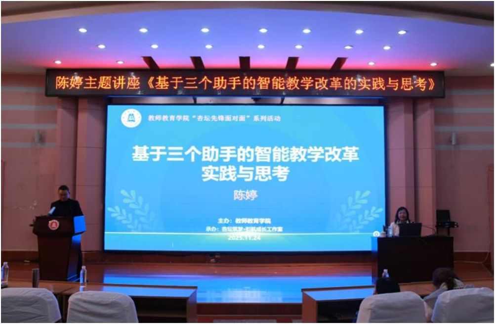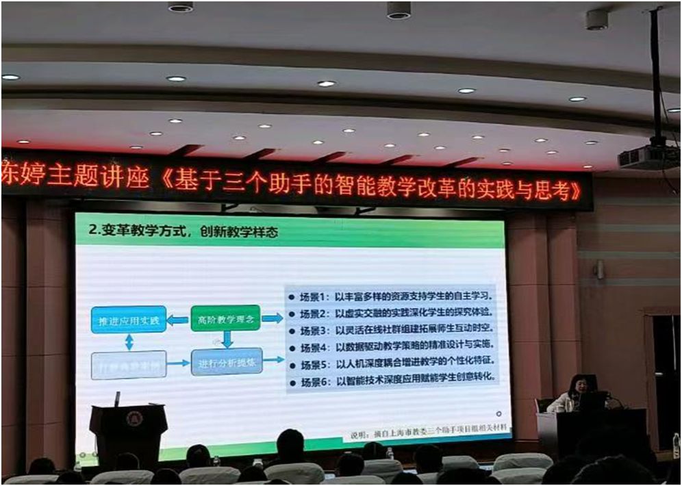 为深入理解智能教学改革的发展趋势,2025年11月24日14:30-16:00,教师教育学院邀请原上海市闸北第八中学党总支副书记、校长、成功教育研究团队的核心成员陈婷教授,开展《基于三个助手的智能教学改革的实践与思考》专题讲座。教师教育学院的教师以及小学教育、学前教育专业的学生共200余人出席了本次讲座。