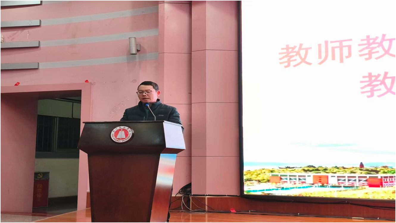单新涛副院长为本次大会致辞。他首先对全体实习生的实习表现给予充分肯定,称赞大家在实习中展现出的专业素养和责任担当。同时,他寄语实习生要在反思中成长,于挫折中锤炼本领,强调实习的结束并非终点,而是教师职业道路的全新开端。此外,单新涛还针对职业发展为实习生提出三点建议,为大家未来的教师职业规划指明了方向。