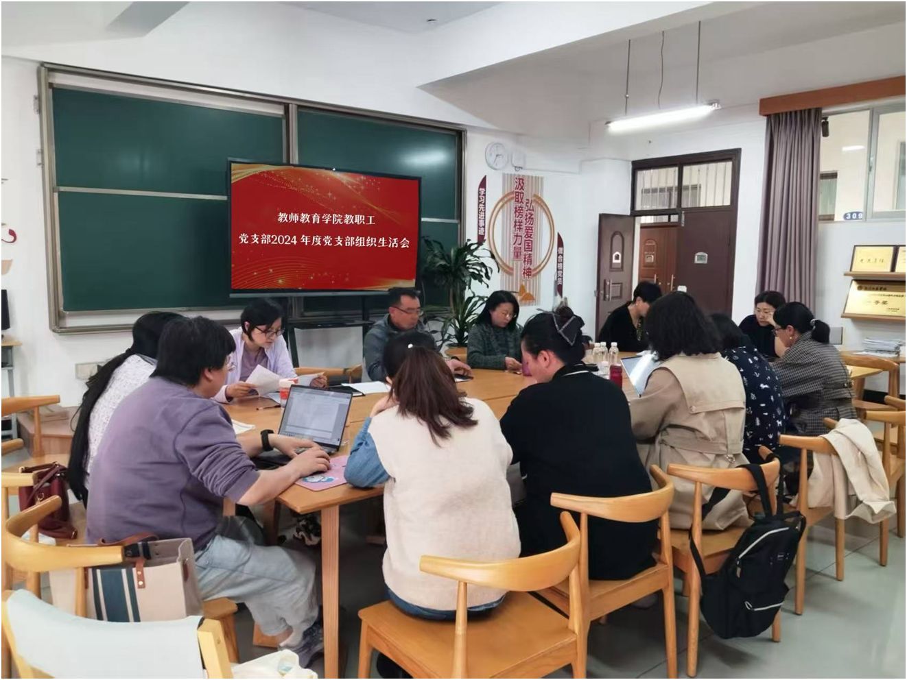 为深入学习贯彻习近平新时代中国特色社会主义思想,巩固深化党纪学习教育成果,综合发挥党的纪律教育约束、保障激励作用,进一步加强党员队伍建设,提升党支部的凝聚力和战斗力,3月11日下午,教师教育学院教职工党支部召开2024年组织生活会暨民主评议党员大会。本次会议由党支部书记常雯婕主持。