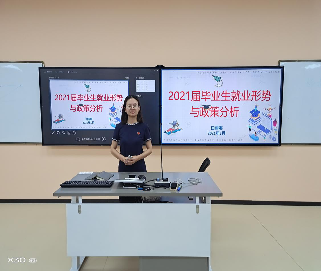 教师教育学院为帮助毕业生深入了解就业形势与国家就业政策,鼓励就业和促进就业,2021年5月7日下午7点,由辅导员白丽娜老师在12教103教室,开展关于2021届毕业生就业形势主题讲座。参会人员为17级未签约毕业生。