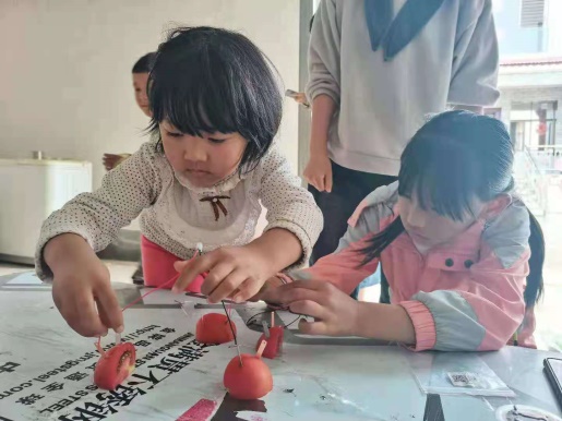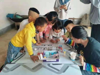 中午时分,他们相约来到活动地。他们叫着:“老师,老师,我们要写毛笔字”看着他们这么积极,我们就先给他们写了一会儿。接着给孩子们做小实验,给他们演示什么水果电池,喷泉实验,讲明其中道理,让他们明白一些生活原理。而后就让他们自己操作,自己尝试,他们一脸惊奇,这就是孩子的童真。实验活动完毕,我们和孩子一起跳绳,玩耍同时加强孩子体魄。
