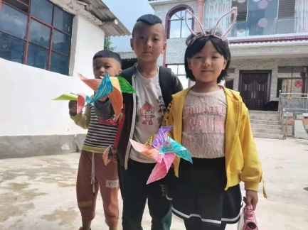 7月27日,是我们实践活动的第五天,这天小朋友们像平时一样早早的来到活动地点,我们就早早的开始今天的教学任务。开始,我们教小孩子继续练习基本书法笔画,他们也特别好学,练习很久。休息片刻,就进行手工教学活动,实践团成员们用卡纸教小孩子们折千纸鹤,小孩学习能力总是很强,不一会儿,他们就自己折出许多大大小小的千纸鹤。而后,我们和孩子一同制作属于孩子自己的风车,并在风车上图上他们各自喜欢的颜色,制作过程中,欢笑满满,他们互相玩耍,这就是小孩子最简单的快乐。
