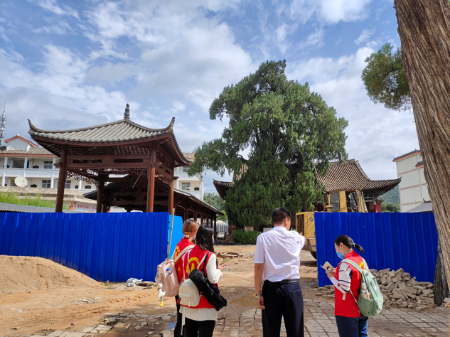图为双江小学朱书记带领实践团成员参观修缮中的峨山中学旧址
