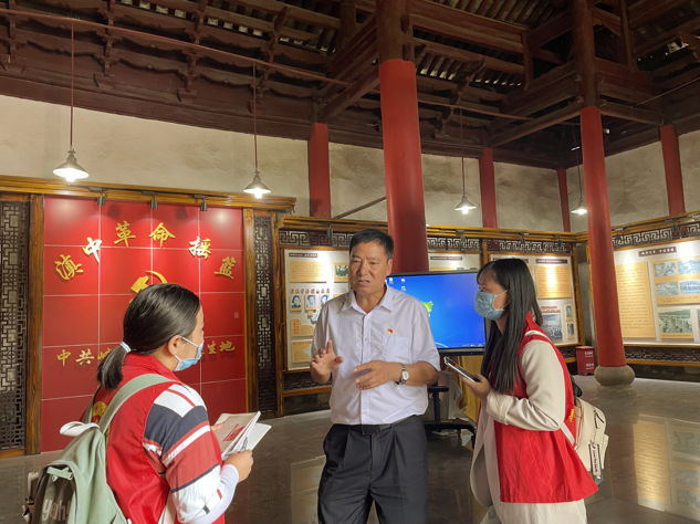 图为双江小学朱书记在文庙正中的大成殿给党史实践团成员讲解红色历史。
