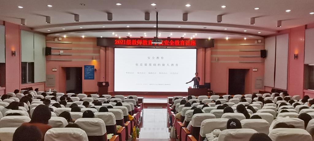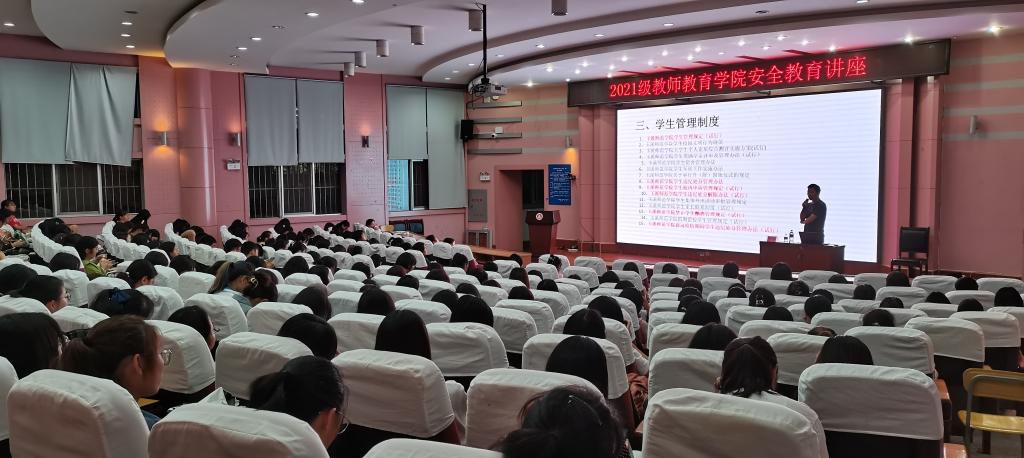 为增强21级学生们的安全意识,建立一个安全稳定有序和谐的校园环境,2021年10月7日19:00,教师教育学院在科学讲堂举行了安全教育讲座,此次讲座的主讲人为我校学生处教育管理科曾华老师,我院2021级全体同学和班主任参加了此次讲座。