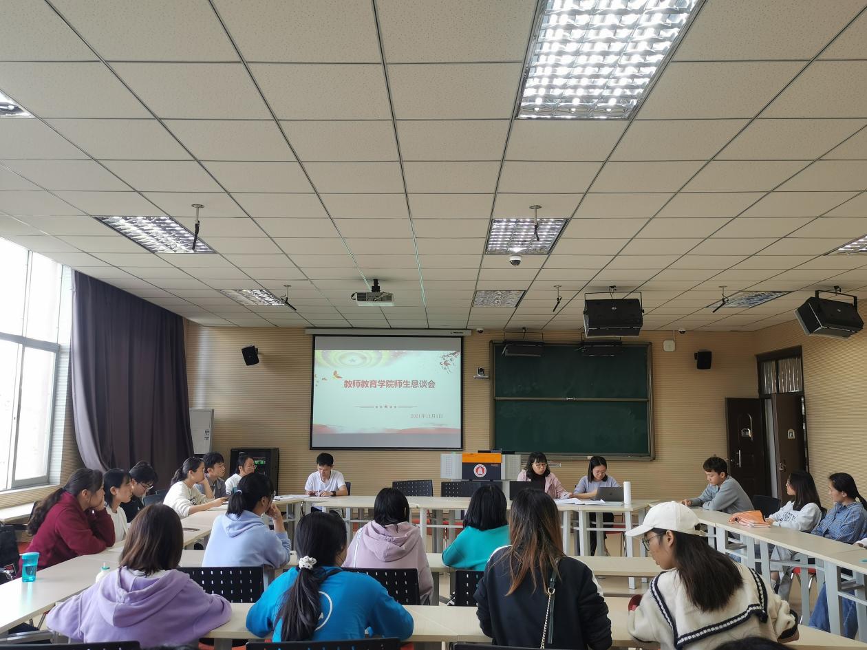 随后,两位老师听取了各班级代表反馈的新问题。部分学生表示希望在疫情条件允许的情况下增加师范生教学活动实践的机会以及希望开设考研培训、四六级培训;解决自习占座问题;优化课程设置等学习上的问题。沈老师表示,学校十分重视同学们的意见并已经着手解决了部分问题,同时作为学生的我们在拥有了更好的学习环境之后更要以饱满的激情投入学习,丰富自己的见识,武装自己的大脑,不负学校厚望。