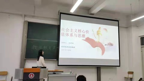 为加强青年学生对社会主义核心价值体系的了解,玉溪师范学院教师教育学院进行了论述如何用社会主义核心价值体系有效引领新自由主义、实用主义、民主社会主义三种当下最具影响力的社会思潮进行实证分析的相关宣传会。