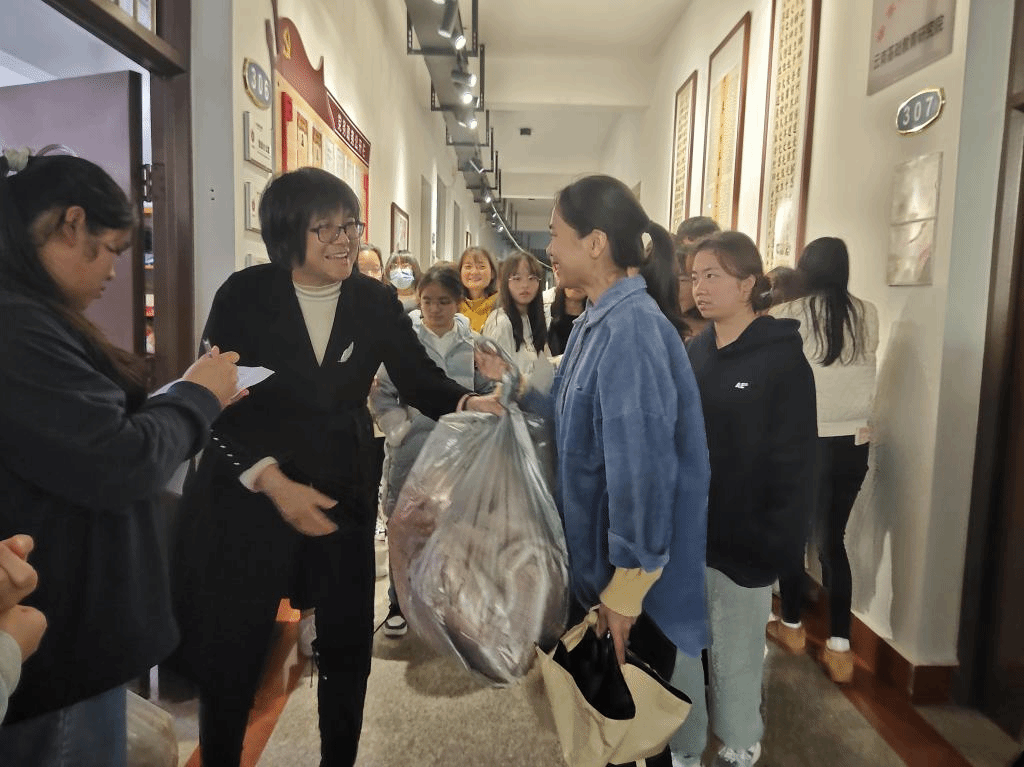 一句句暖心的话语、贴心的问候,让教苑学子感受到了学校带来的温暖。赵老师说“毛毯不厚,但情意难承,被子只有一床,但关爱无限。同时,温暖不光是今夜毛毯加身的感受,更是内心体会到的源于社会、学校、老师的关心。”;在学习上,赵老师提到师范生应该注重师德、师能的培养,要求同学们围绕教师职业道德和职业能力去发展自己,制定属于自己的四年大学求学计划,将学识外化于形,内化于心,怀感恩之心去努力向前成为更加优秀的自己。紧接着,赵老师为每位同学分发毛毯,祝愿他们在今后的学习中取得优异成绩。
