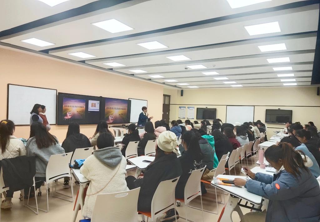2022考研进入倒计时,教师教育学院于12月13日19:00在12教103室开展了“考研冲刺”激励活动。院长王晶晶老师,党委副书记沈丽萍老师,以及考研工作负责人左兴玲老师代表学院为90多位即将奔赴考研的学子们送上诚挚而又温暖的祝福。