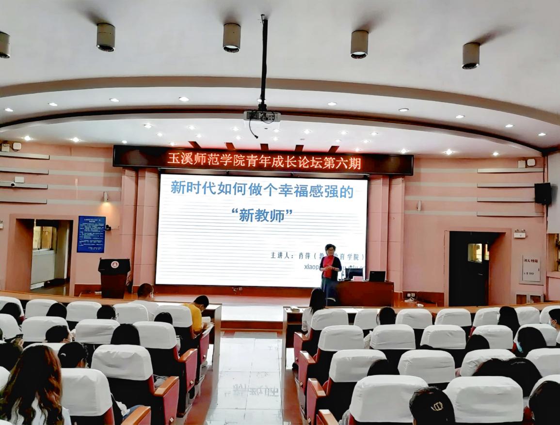 4月22日19:00,由教师教育学院承办的“2022年玉师青年论坛第六期——新时代如何做个 幸福感强的“新教师”,在科学讲坛如期举行,本次论坛由教师教育学院教师肖萍博士(博士后)主讲。