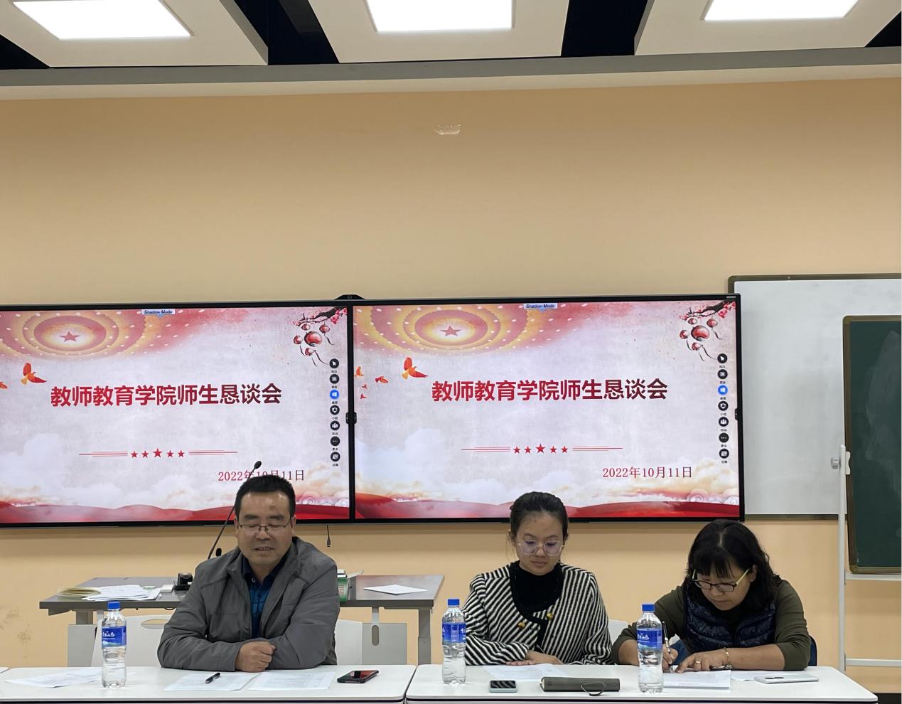 10月11日下午17:40,教师教育学院在12教103召开了师生恳谈会。参加这次会议的有教师教育学院党委书记莫晓辉、党委副书记沈丽萍、辅导员白丽娜以及各班的班长、团支书、宣传委员。会议主要针对同学们提出的诉求进行了相应的回答以及提供了一些解决办法,同时对疫情、安全、二十大的召开工作进行了总结安排。