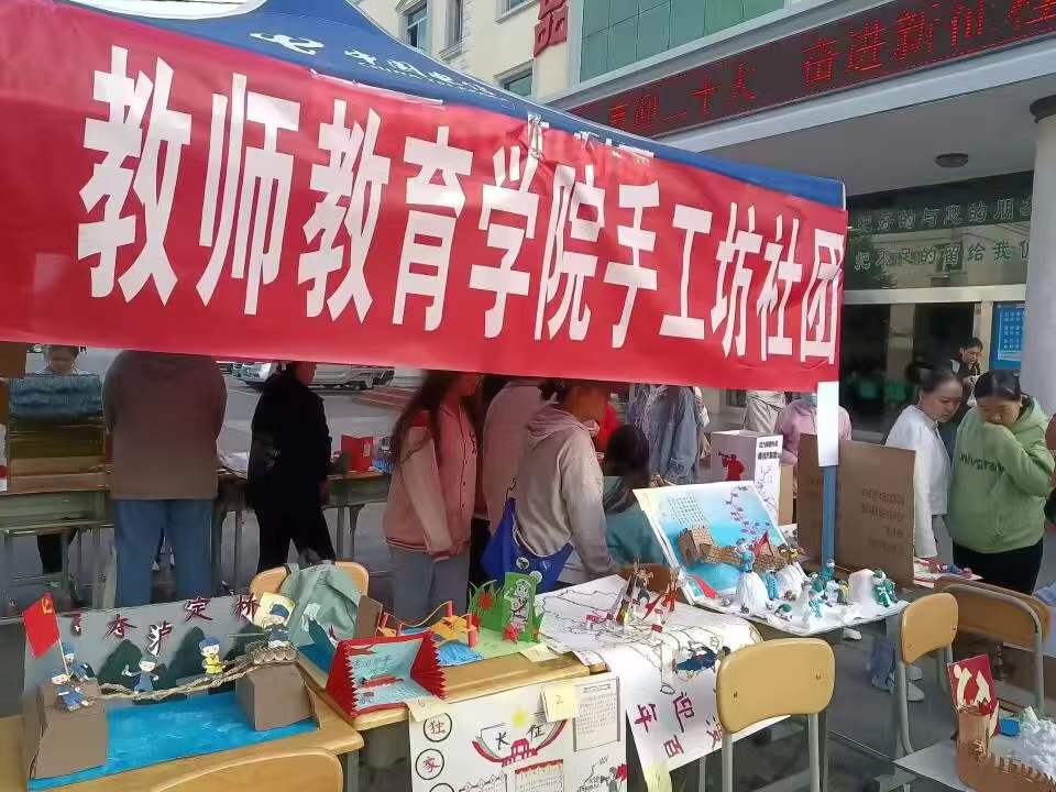 为了丰富同学们的校园生活,培养学生的动手、动脑能力及创造精神,2022年10月22日早上,教师教育学院“手工坊”社团在品味苑门口开展“重走长征路,献礼二十大”手工艺品大赛作品展览及评选活动,最终由指导老师刘芳及部分学生和教职员工进行投票,综合评出获奖作品。