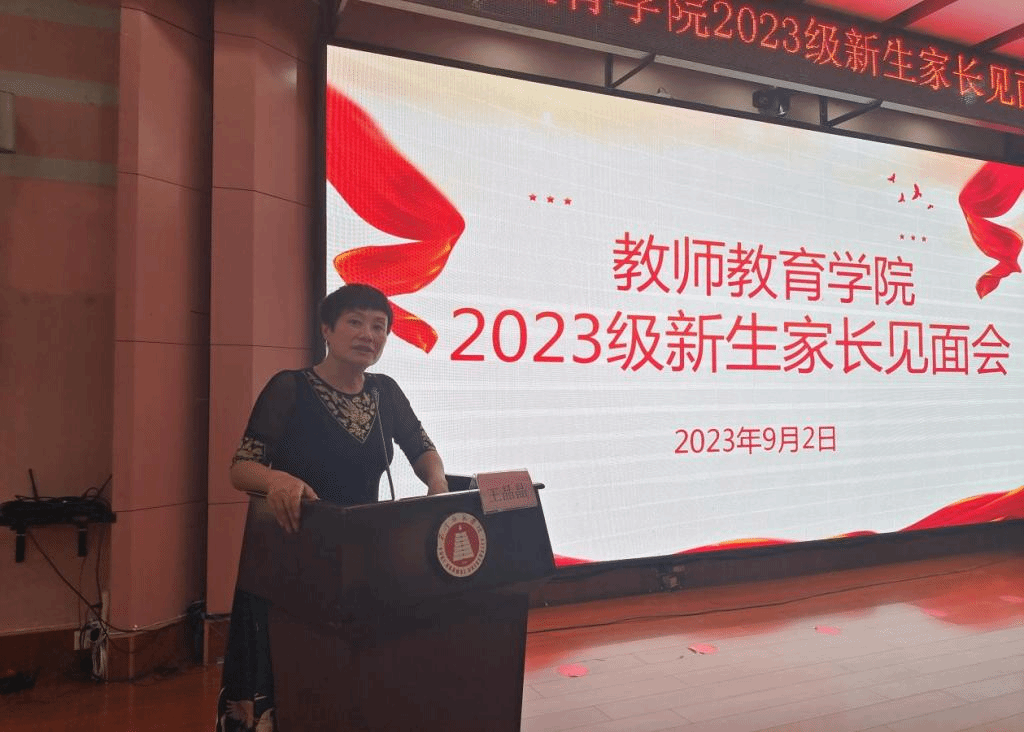 沈副书记以“家校协力,共赢未来”为主题,与家长们交流了如何帮助大学新生尽快度过适应期,成长为一名合格的师范生。学校、学院、班级关心每一名学生的成长,教师教育学院实行党委领导下的双线管理+朋辈领航计划,想方设法帮助大一新生尽快度过适应期。但面对多元化、“00”后学生占主体的2023级新生,还需要家长与学校构建起双向沟通渠道,建立长期沟通与共育的长效机制,共同起承担培养学生的重任。沈老师呼吁家长和学校共同携手,三向奔赴,共育英才!
