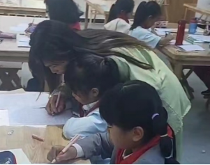 来自小学教育专业的师范生们从坐姿、握笔、行笔三个方面循循善诱地教导同学们硬笔书写的特点和规律,一边亲自示范,一边与同学们亲切互动、耐心细致地给孩子们讲解汉字结构、书写要领,演示和指导汉字基本笔画的运笔过程,并单独对学生进行书写辅导,不仅培养孩子们良好的书写习惯,也让他们在轻松愉快的氛围中感受到了书法的魅力,现场学习气氛浓厚。