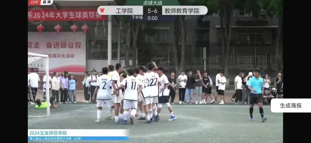 4月8日17点30分教师教育学院对战工学院的决赛正式拉开序幕。比赛的上半场节奏较为轻快,双方互有攻守,不分伯仲。比赛来到下半场后,教师教育学院男子足球队充分发挥“顽强拼搏、永不言败”的精神,以精湛的点球技术为球队拿下关键一分。最终以6:5的比分赢下比赛。