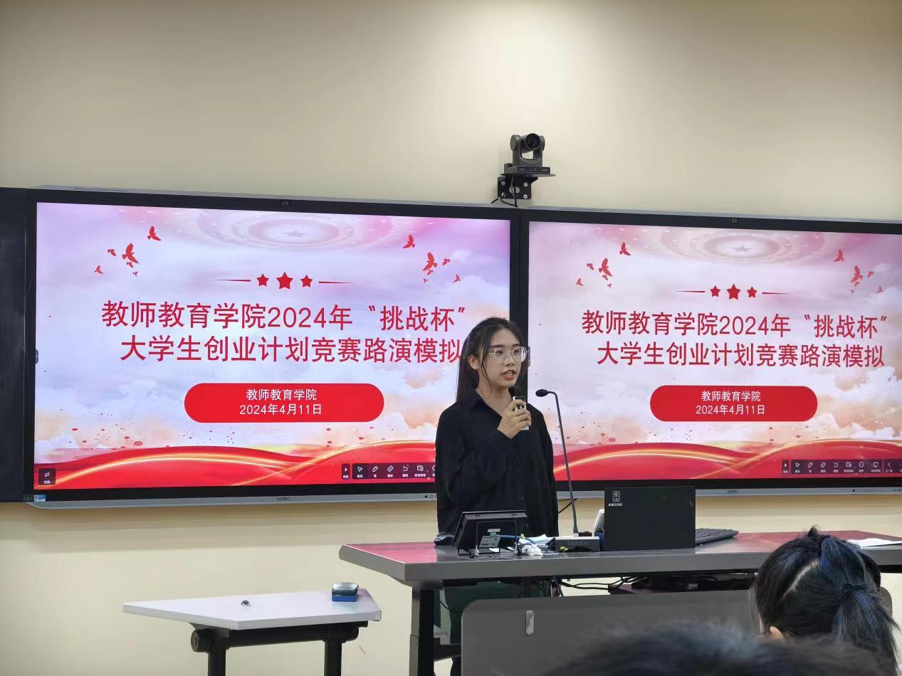 4月11日,教师教育学院在12-107进行了第十一届“挑战杯”云南省大学生创业计划竞赛校级决赛路演模拟,学院党委书记莫晓辉、党委副书记宋树兵、指导老师杨景雅、白丽娜担任评委,进入校级决赛的9支团队参加了路演模拟。
