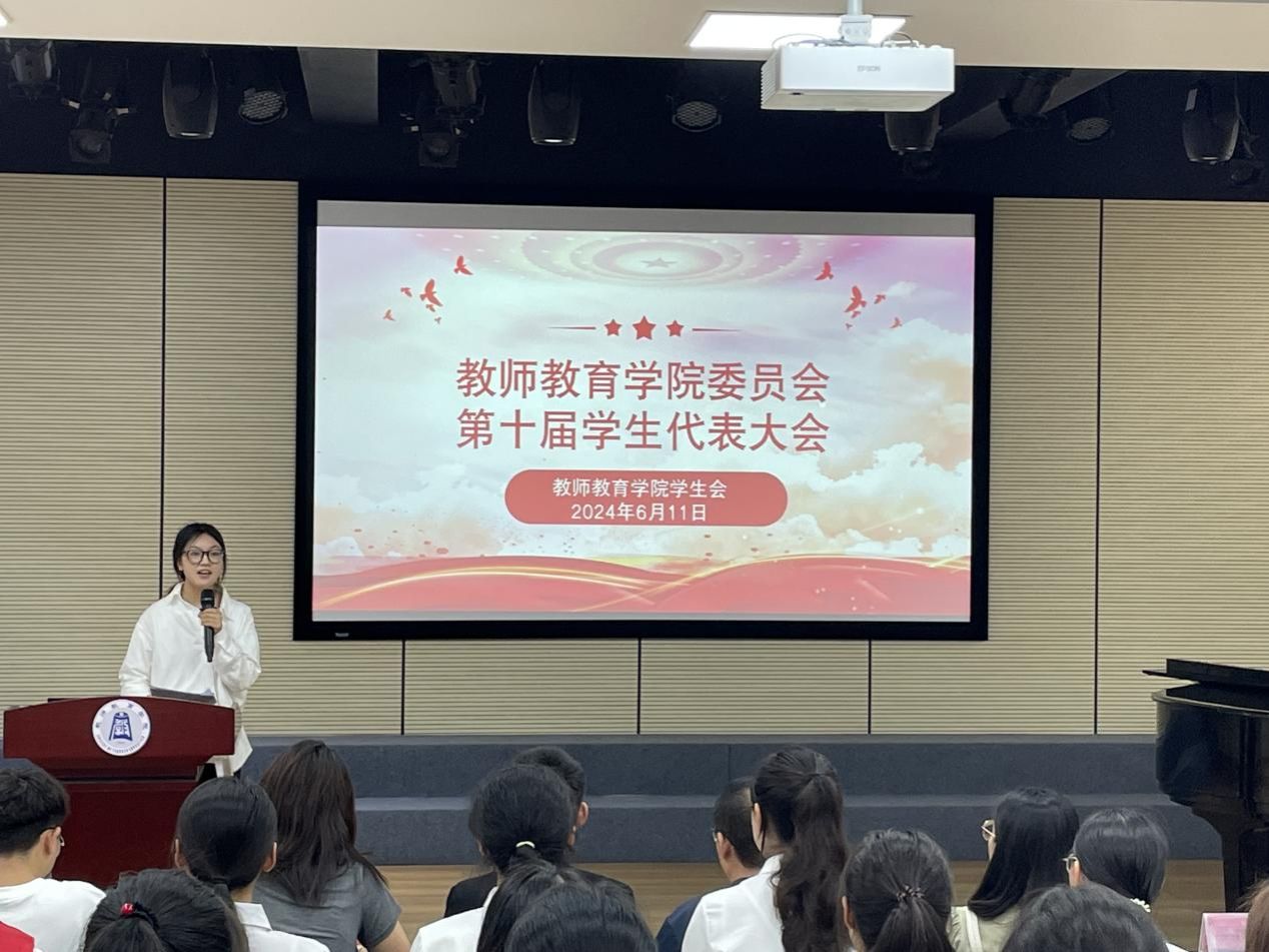 6月11日,教师教育学院第十次学生代表大会在十二教学楼阶梯教室举行。教师教育学院党委副书记宋树兵、辅导员白丽娜、校学生会代表及学院各班级优秀学生代表共120余人参加此次大会。