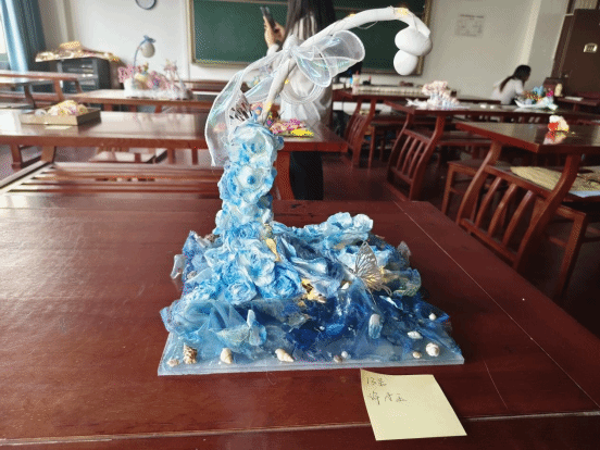 本次大赛不仅是一场手工技艺的比拼,更是一次美育的深度实践。作品采用了再生材料,体现了环保与创新的理念,如《春》通过多种树叶的拓印与植物染色技术,将自然素材转化为艺术,既传递生态保护意识,也展现科学与美育的跨界融合。拓印、黏土塑形等互动活动,让美育更加贴近师生生活,真正实现了以美育人、以文化人。