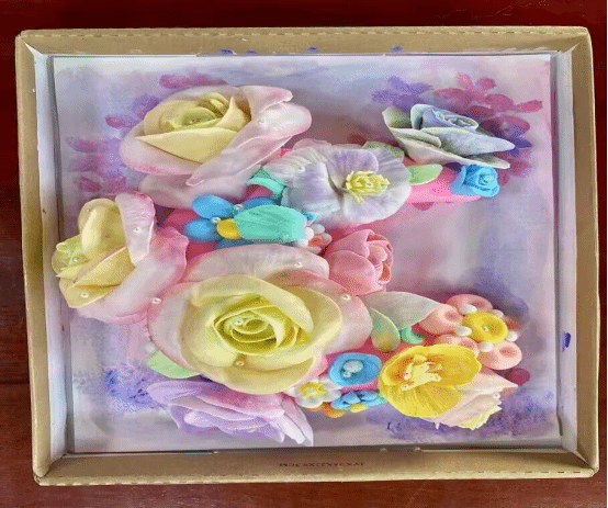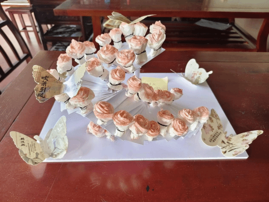 《粉韵花笺》则运用超轻黏土捏塑出渐变花瓣,辅以树脂黏土定型,作品完成后,定型的黏土花瓣散发淡雅香气,仿佛让人置身于花海之中。