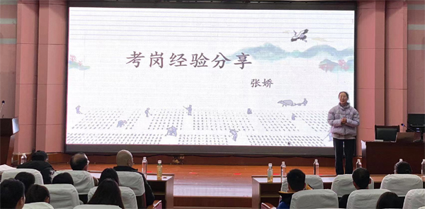 宣讲会邀请到2023届优秀毕业生张娇同学给大家做毕业考编经验分享。张娇同学结合自身经历,详细介绍了教师编考试内容、考前准备、考友选择、考编趣事、上岸生活等,激起全场同学的奋战2024年事业单位考试的强烈意愿。