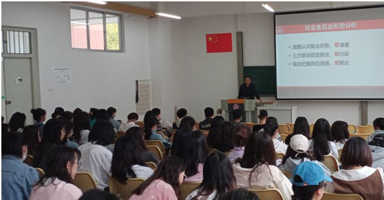 三位领导以当前就业形势为切入点,通过一系列就业数据引导我院毕业生清醒认清就业形势、精准把握岗位信息,争取早日就业。