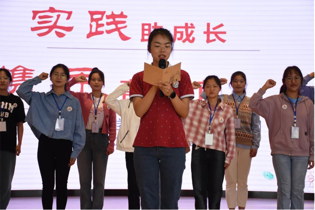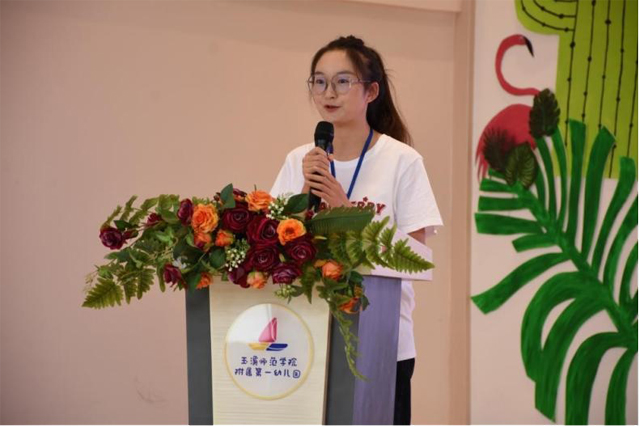 2019级学前教育专业学生杨孝琴代表全体实习生做出承诺,表示全体实习生将始终贯彻有思想、有计划、有行动、有落实的“四有”原则,积极主动地锻炼自己,认真把握此次实习机会,虚心向各位优秀前辈学习,以梦为马,礼赞成长。