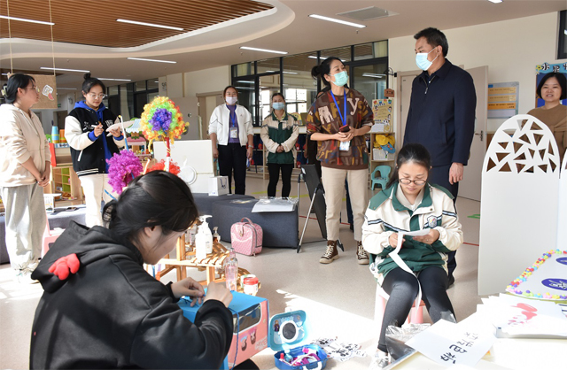 在刘芳园长的陪同下,段红云校长实地查看了幼儿园的户外活动场地、班级活动室、功能室、小菜园、小剧场等区域,并仔细询问幼儿园各项工作开展情况。调研中,段红云校长与教师教育学院2019级学前教育专业实习生亲切交谈,向实习生了解实习生活情况,鼓励实习生把在学校所学的理论知识与实践有效结合起来,不断提升自己的专业素养。