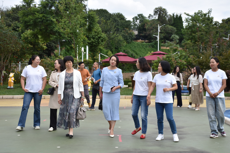 为加强园所之间的交流,达到理念碰撞,以优促新,互学共进效果。2023年9月5日下午,云南大学后勤服务集团及云南大学幼儿园一行6人到我园进行调研交流。云南大学后勤服务集团总经理费毅,副总经理马学荣、刘晓寒;云南大学幼儿园园长顾海洁,副园长李雄燕、陈莲花;玉溪师范学院党委副书记、校长段红云,党委委员、副校长章新,副校长杨伟,教师教育学院党委书记莫晓辉,教师教育学院党委副书记、院长王晶晶,办公室(党委巡察办)副主任陈祯,学前教育专业系主任左兴玲,教师教育学院教师代表;玉溪今珲科技有限公司总经理王飞,副总经理李江华;玉溪师范学院附属第一幼儿园园长杨燕霞,副园长杨霞以及教师代表参加了交流座谈会。