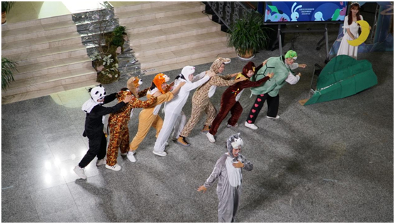 参加本次演出的“童语同音”志愿服务团,是一支来自于玉溪师范学院教师教育学院公益实践团队。为了筹备好本次演出,团队的10名同学历时一个月进行了艰苦排练。在指导老师的带领下,他们细致选择剧目,精心搭配服装、剪辑音乐,认真对待每一次排练、精准把握小动物角色特点,最终精彩演绎了《月亮的味道》,体现出教师教学学院学生较强的艺术审美和专业素养。