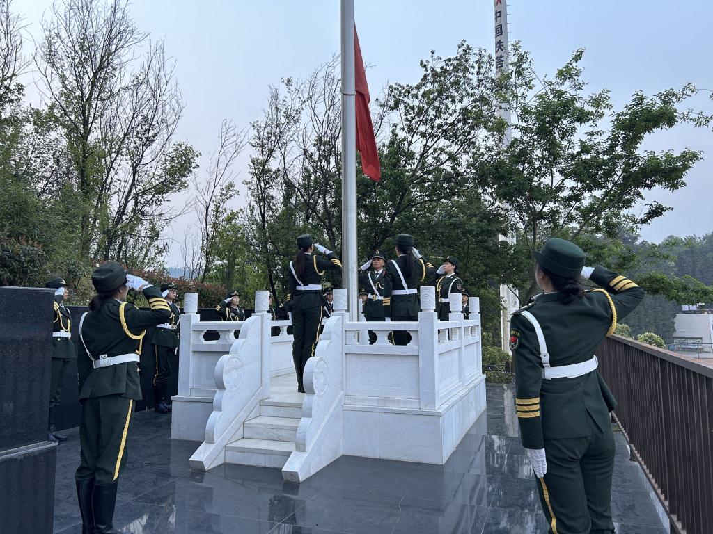 2023年4月17日早上7时,教师教育学院在1号足球场举行升旗仪式。仪式开始,国旗护卫队队员们踏着整齐的步伐护送着鲜艳的五星红旗向升旗台走来,在场的每一位师生向国旗行注目礼,齐唱国歌。伴随着庄严激昂的国歌,五星红旗冉冉升起,随风飘扬。