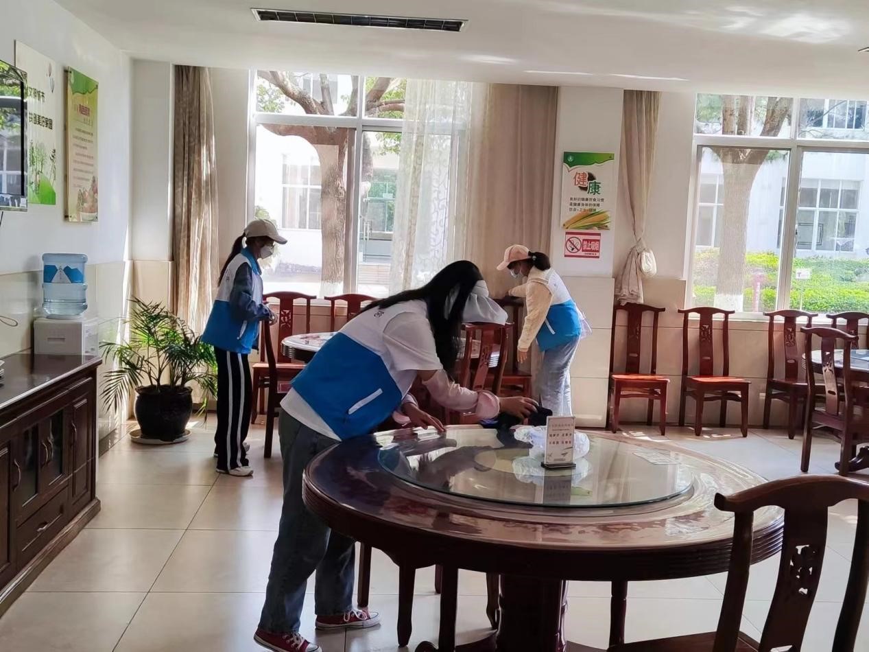 为了培养当代大学生的社会实践能力和社会公德意识,弘扬中华传统美德,推动全社会形成“敬老、爱老、助老”的良好氛围,校团委、教师教育学院团委和教师教育学院青年志愿者协会组织志愿者三十余人,以“结对+接力”的方式,于2023年3月27日和4月16日两次前往玉溪市社会福利服务中心开展服务活动。