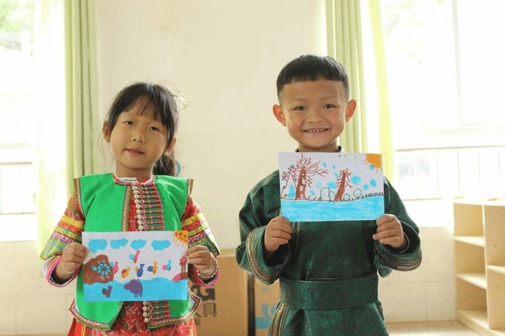 在兴蒙蒙古族自治乡中心幼儿园,“萤火虫”推普实践团选取幼儿生活中常见的物品、图片作为活动材料,开展“你说我猜”、自主构想绘本内容、等互动游戏,鼓励幼儿想一想、画一画、演一演、说一说,向在游戏中积极互动的幼儿提供示范引导培养,培养幼儿讲普通话的习惯,让幼儿的回避发言,声音较小、口齿不清晰等情况得到充分改善。