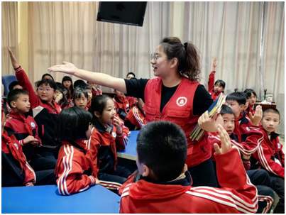 首先,志愿者们针对不同年龄段的儿童分别设计了“这里有什么”以及“读到什么就举手”两个游戏环节,激发孩子们说好普通话的兴趣;接着,服务团志愿者为孩子们带来了精彩的绘本故事——《企鹅小克有个大发现》。志愿者们用新颖的方式演绎绘本故事,带领孩子们遨游在企鹅小克的世界里,从故事中学到了企鹅小克身上勇于冒险、热爱阅读的品质,引导孩子们将企鹅小克的阅读体验和自己的读书经历融合起来,让孩子们也能像企鹅小克一样,和书籍相遇,学会阅读,爱上阅读,把阅读的温暖带给身边的每一个人。随后,志愿者们带领孩子们诵读经典中关于读书的论述,诵读过程中为孩子们正音,提高他们的普通话发音准确程度,同时也引导孩子们遵循古人的谆谆教诲。最后,志愿服务团的师生们代表玉溪师范学院教师教育学院分发在校大学生为孩子们精心制作的书签,为孩子们带去真切的关爱及祝愿。