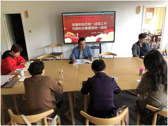 本次会议以“加强和规范统一战线工作,巩固和发展爱国统一战线”为主题展开。首先,教师教育学院党委书记、院长莫晓辉传达了《中国共产党统一战线工作条例》的内容,包括统战工作条例制定的依据、统战工作范围、统战工作原则、统战部门自身建设问题等四个方面,与当下社会实际情况相结合剖析其内涵,强调了统战工作的重要性。