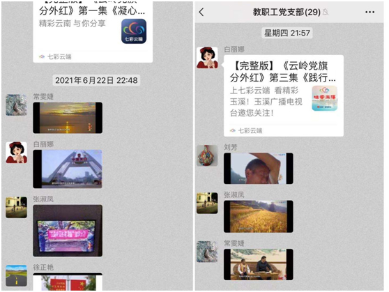 为庆祝中国共产党成立100周年,由中共云南省委组织部、中共云南省委宣传部和云南广播电视台联合制作的四集电视片《云岭党旗分外红》于6月22日开播。6月23日至6月25日,教师教育学院教职工党支部组织全体党员教师观看,通过微信群反馈观看情况和交流心得。