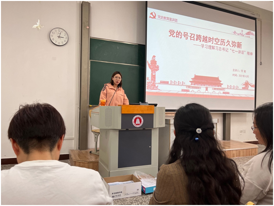 按照《玉溪师范学院关于认真学习贯彻习近平总书记在庆祝中国共产党成立100周年大会上的讲话的工作方案》要求,教师教育学院认真组织开展了党史学习教育宣讲活动——深入学习习近平总书记“七一”重要讲话精神。10月11日下午3点,教师教育学院全体教师和部分学生代表在12教105参加了此次宣讲会,会议由教师教育学院党委书记莫晓辉主持,由马克思主义学院教师何敏主讲。