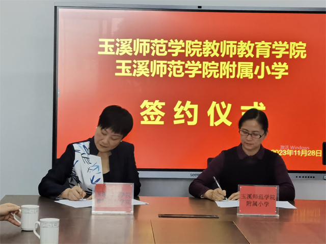 11月28日,玉溪师范学院教师教育学院与玉溪师范学院附属小学在玉溪师范学院附属小学会议室举行实习基地建设协议签约仪式。玉溪师范学院教师教育学院院长王晶晶、正处级组织员高洪、副院长殷素梅、小学教育专业负责人黄丽辉以及部分教师代表,玉溪师范学院附属小学校长杨琼英、校长助理孙文娇、党支部副书记周玉松、教务主任金芬以及教师代表出席本次“U-G-S”一体化合作签约仪式。
